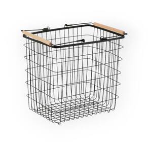 Cesto aramado 47l com alca de bambu preto oikos