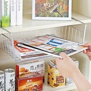 Cesto aramado de metal para prateleira Cesto para prateleira de metal Organize seu armário facilmente com este cestinho pendure em prateleiras de armários da cozinha, banheiro ou lavanderias, para condimentos e conservas, papel toalha/ filme/ manteiga, produtos de higiene e limpeza e muito mais ele cabe em prateleiras de qualquer tipo e fica lindo e discreto Você pode pendurar para o lado de dentro ou de fora, de acordo com o seu gosto