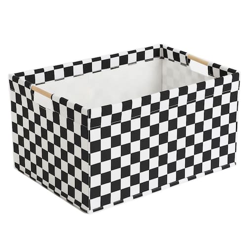 Cesto armazenamento decoração roupa com alça de bambu Medidas: 44 x 28 x 20cm ========== sobre o produto ========== O cesto armazenamento decoração roupa com alça é a união perfeita entre funcionalidade e charme. Ideal para organizar itens do dia a dia como cosméticos, acessórios, objetos de escritório ou itens de lavanderia, ele também se destaca como peça decorativa. Com design moderno e acabamento clean, é uma ótima escolha para manter a casa organizada com estilo e leveza. ========== especificações ========== Design quadriculado em preto e branco, combina com diversos ambientes. Medidas ideais de 44 x 28 x 20cm, perfeito para nichos, prateleiras ou gavetas. Versátil e multiuso, pode ser em banheiros, quartos, escritórios e mais. Leve, resistente e fácil de limpar, feito para o dia a dia. ========== ficha técnica ========== Cor: preto Medidas: 44 x 28 x 20cm Material: poliester / bambu Marca: organize já : 3 meses Estamos online para quaisquer dúvidas, Agradecemos e aguardamos o seu pedido. P: o cesto é empilhável R: sim, pode ser empilhado com outros do mesmo modelo, otimizando o espaço. P: o produto é novo ou Marca: Não Informado Ean: 9999916922265