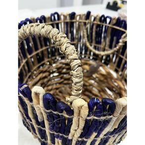 Apesar de produzido a mão, o cesto é firme e reforçado com metal no seu interior e ainda conta com duas alças para melhor transporte.