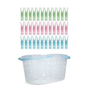 Um kit completo para auxiliar suas atividades na lavanderia de casa. Este é o Cesto de Prendedores Standard. Com trinta e seis peças, ele possui três opções de cores de prendedores em polipropileno e arame em aço. Ideais para peças leves, não marcam suas roupas e vem em peças sortidas nas cores rosa, verde e azul. Acompanha simpático cestinho com alças para manter seus prendedores sempre à mão. Uma boa ideia para presentear em chás de panela!