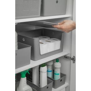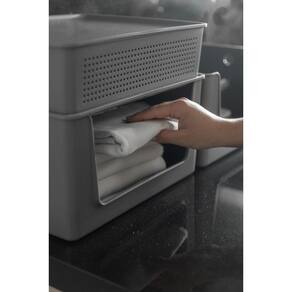 Os cestos organizadores Ou da Linha Flow ajudam a manter cada ambiente da casa sempre organizado, trazendo mais praticidade para a rotina. Versáteis, são ideais para guardar produtos de limpeza, roupas, acessórios ou até alimentos. Com oito tamanhos diferentes disponíveis, permitem diversas combinações para adaptar a organização conforme a necessidade de cada espaço.