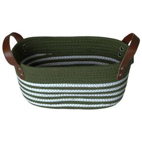 Cesto de Algodão Retangular com Alça Verde com Listras Brancas