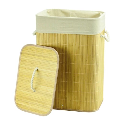 - Capacidade 70 Litros - Acompanha saco de tecido interno. - Dimensões 40 x 58,5 x 30cm largura x altura x profundidade - Material Durável: Feito de bambu, resistente e ecológico. - Tampa Protetora: Mantém odores e sujeira fora de vista. - Alças Confortáveis: Facilita o transporte de roupas. - Design Elegante: Combina com qualquer decoração.