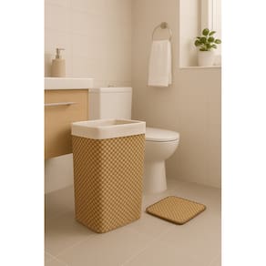 Este elegante cesto de bambu é a solução ideal para manter seus ambientes organizados com estilo. Com design moderno e estampa listrada em tons naturais, ele combina praticidade e sofisticação. Versátil, pode ser utilizado no quarto, lavanderia ou banheiro para armazenar roupas sujas, toalhas ou objetos diversos. Leve, resistente e com forro em tecido, é uma peça funcional que complementa a decoração com um toque rústico e acolhedor.