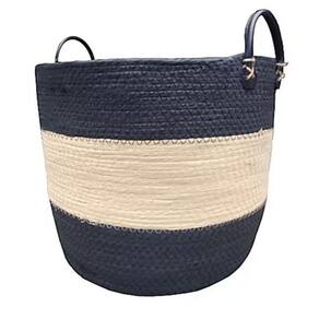 Cesto De Fibra Natural Oval Com Alça De Couro Etnias - Jolitex P -