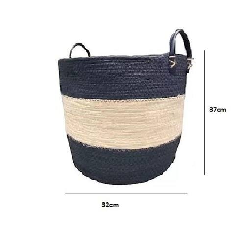 Cesto De Fibra Natural Oval Com Alça De Couro Etnias - Jolitex G -