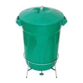Cesto e tampa injetados em plástico polipropileno (PP) copolímero, material resistente com excelente acabamento. O acionamento da tampa é feito através de pedal o que evita eventual risco de contaminação. A armação e pedal são confeccionadas em aço carbono SAE 1020 galvanizado. Possui parafs de fixação da tampa no suporte e quatro ponteiras para o suporte não danificar o piso. Medidas: 640 mm (altura) x 460 mm (largura) x 540 mm (profundidade).