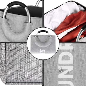 Cesto de Roupa Cinza Laundry Alça de Alumínio