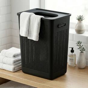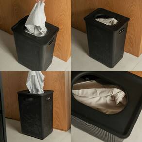 O cesto de roupas flow de 38L foi pensado para quem precisa otimizar cada cantinho da lavanderia ou do banheiro. Com design compacto (27x37x50cm) ele acomoda as roupas do dia a dia de forma discreta e eficiente.