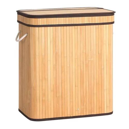 Cesto de roupa duplo de bambu com tampa 32x52x60cm - mimo style deixe sua casa mais organizada com o cesto de roupa duplo de bambu com tampa 32x52x60cm. Confeccionado em bambu, material resistente e com agentes bactericidas que previnem o aparecimento de fungos e bactérias, ele é perfeito para sua casa. Possui alças para facilitar o transporte, forro de tecido removível com separação que facilita a limpeza e tampa. Pode ser utilizado no quarto, no banheiro e na lavanderia.