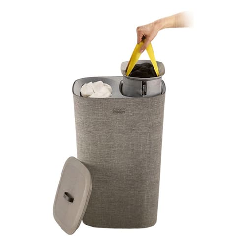 Praticidade e design em um so produto! O Cesto de Roupa Duplo Joseph Joseph oferece 60 litros de capacidade total, dividido em dois compartimentos para facilitar a separacao de roupas claras e escuras. Com estrutura dobravel, e perfeito para otimizar espaco quando nao estiver em uso. Seus sacos internos removiveis tornam o transporte das roupas ate a maquina ainda mais simples e higienico. Fabricado com materiais duraveis e de alta qualidade, une funcionalidade e estilo para o seu dia a dia.