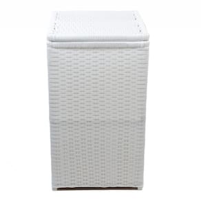 Medidas: 40cm comprimento x 40cm largura x 70cm altura . Cor: Branco. Utilidade: Organizador de Quarto, área externa e/ou banheiro. Conteúdo da Embalagem: Um baú cesto de roupa. Necessita Montagem: Não. Litragem: 112 litros. Composição/material: Madeira, Fibra Sintética e fundo em Mdf. Ean: 7898662380317 Marca: Não Informado