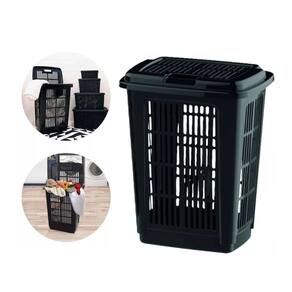 -01 Cesto de Lavanderia com Tampa - 60 Litros - Preto.