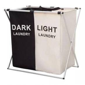 Mantenha suas roupas organizadas com praticidade e estilo! Este cesto dobrável com 2 compartimentos é ideal para separar roupas claras e escuras, limpas e sujas, ou dividir o uso entre adultos e crianças.