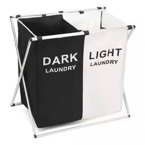 Mantenha suas roupas organizadas com praticidade e estilo! Este cesto dobrável com 2 compartimentos é ideal para separar roupas claras e escuras, limpas e sujas, ou dividir o uso entre adultos e crianças.