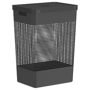 Cesto De Roupa Suja Tampa Grid 49L Organizador Área Serviço - Preto