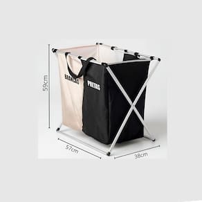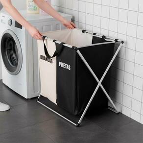 Cesto duplo ideal para organizar e agilizar sua rotina de lavanderia.