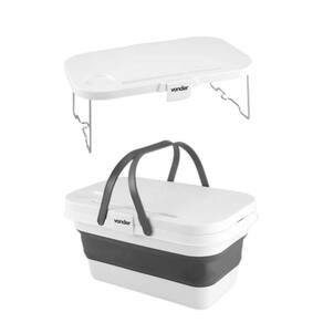 Conteúdo da Embalagem: 1 Cesta dobrável com alças. Possui design moderno e compacto, proporcionando melhor aproveitamento de espaço para guardá-lo após o uso, além de alças que possibilitam maior praticidade no transporte. Conta ainda com tampa que pode ser facilmente convertida em uma mesa com porta-copos e porta-celular/tablet. Indicado para uso doméstico, camping, piqueniques, pesca, praia, churrasco e muito mais. Para expandir, pressione o fundo até obter o formato completo. legal: 90 dias Detalhes Técnicos Material: Polipropileno e borracha termoplástica Dimensões: Aberto: 450 mm x 290 mm x 235 mm; Fechado: 450 mm x 290 mm x 95 mm Dimensões da mesa C x L x A : 450 mm x 290 mm x 160 mm Capacidade: 16 Litros Capacidade máxima de carga: 5 kgf Massa aproximada peso : 1,28 kg Marca: Não Informado Ean: 7893946850531
