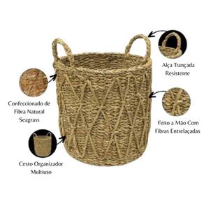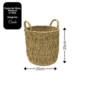 Cesto Seagrass Fibra Natural Trançado Alças Caubi 25cm