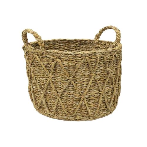 Cesto Seagrass Fibra Natural Trançado Alças Caubi 37cm