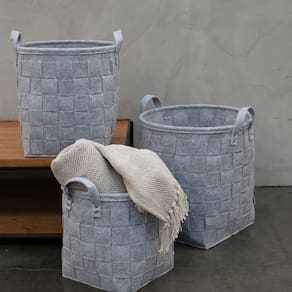 Cesto Feltro Tramado Cinza 38x38x38 Cm Com Alças Yoi Tecido Lindo cesto para decorar sua casa, podendo ser utilizado em diversas situações.