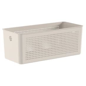 O Cesto Flow OU 34x15x13 cm Bege 6,6 Litros mantêm cada espaço da casa organizado, proporcionando uma rotina fluida e eficiente. São a solução ideal para armazenar e organizar produtos de limpeza, roupas, acessórios ou alimentos. Com oito tamanhos disponíveis, você pode compor como quiser.