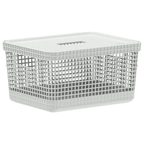 Cesto Grid com Tampa 8 Litros Caixa Organizadora Escritório Cor: Branco Cesto Grid com Tampa 8 Litros Caixa Organizadora Escritório cesto organizador de bancada caixa com tampa para escritóro pode ser utilizada como floreira disponível em Cores deste produto verificar - Azul - Branco - Bege - Cinza - Preto Medidas: Altura: 15.2cm Largura: 28cm Profundidade: 22cm Material: produtos em plástico 100% pós-consumo. Linha: Organizar Modelos: Grid Tampa multiuso com pegada fácil. São diversas opções cestas com cores que combinam com qualquer ambiente da sua casa. A linha foi desenvolvida priorizando o cuidado com a sua rotina, por isso, possui furos que facilitam a ventilação e bordas maiores que facilitam a pega e transporte. OBS1: Imagens meramente ilustrativas. Anúncio referente à 01 unidade de cesto Grid. OBS2: Cores podem alterar levemente entre telas e monitores. Ean: 7908466013622