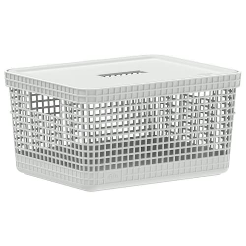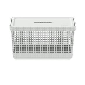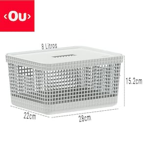 Cesto Grid com Tampa 8 Litros Caixa Organizadora Escritório Cor: Branco Cesto Grid com Tampa 8 Litros Caixa Organizadora Escritório cesto organizador de bancada caixa com tampa para escritóro pode ser utilizada como floreira disponível em Cores deste produto verificar - Azul - Branco - Bege - Cinza - Preto Medidas: Altura: 15.2cm Largura: 28cm Profundidade: 22cm Material: produtos em plástico 100% pós-consumo. Linha: Organizar Modelos: Grid Tampa multiuso com pegada fácil. São diversas opções cestas com cores que combinam com qualquer ambiente da sua casa. A linha foi desenvolvida priorizando o cuidado com a sua rotina, por isso, possui furos que facilitam a ventilação e bordas maiores que facilitam a pega e transporte. OBS1: Imagens meramente ilustrativas. Anúncio referente à 01 unidade de cesto Grid. OBS2: Cores podem alterar levemente entre telas e monitores.