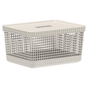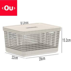 Cesto Grid com Tampa 8 Litros Caixa Organizadora Escritório Cor: Bege Cesto Grid com Tampa 8 Litros Caixa Organizadora Escritório cesto organizador de bancada caixa com tampa para escritóro pode ser utilizada como floreira disponível em Cores deste produto verificar - Azul - Branco - Bege - Cinza - Preto Medidas: Altura: 15.2cm Largura: 28cm Profundidade: 22cm Material: produtos em plástico 100% pós-consumo. Linha: Organizar Modelos: Grid Tampa multiuso com pegada fácil. São diversas opções cestas com cores que combinam com qualquer ambiente da sua casa. A linha foi desenvolvida priorizando o cuidado com a sua rotina, por isso, possui furos que facilitam a ventilação e bordas maiores que facilitam a pega e transporte. OBS1: Imagens meramente ilustrativas. Anúncio referente à 01 unidade de cesto Grid. OBS2: Cores podem alterar levemente entre telas e monitores. Ean: 7908466013660