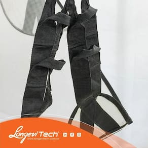 Desenvolvido para ser utilizado com sistemas de guincho hospitalar ou domiciliar, o cesto possui estrutura reforçada e tecido resistente à água, proporcionando suporte anatômico ao corpo e facilitando a movimentação do paciente com estabilidade e cuidado.