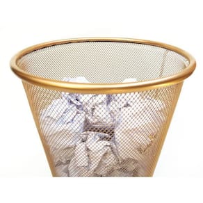 CESTO LIXEIRA DOURADO 10L Lixeira Aramada DOURADA Com design moderno e na cor Dourada Ouro, este cesto de lixo de metal, vai valoriza a decoração e melhorar a organizado do seu escritório, deixando seu ambiente mais sofisticado. Benefícios do Produto: - Acabamento lindo que ganha destaque no escritório.- Produto super leve e compacto.- Material de alta durabilidade e resistência.- Modelo aramado fácil de limpar.- Grande resistência à ferrugem e corrosão. Caracteristica: Altura: 27cmDiâmetro da boca: 23,5cmDiâmetro da base: 18,5cm10 Litros Marca: Markys Store