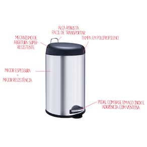 Uma casa bonita merece atenção em todos os detalhes. Com a lixeira da Linha Decorline você dá um ar mais divertido e mordeno ao seu escritório ou á sua cozinha. Além da beleza, a liexeira Decorile tambem se destaca pela funcionalidade. O pedal deste modelo tem a base em aço inox e aderência com ventosas, o que garante estabilidade de usa. A tampa é feita em polipropileno, um material durável e fácil de limpar. Com capacidade para 6L, a lixeira tem o corpo em aço inox e tampa em plástico.
