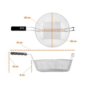 boca: 36cm; base: 30cm; Altura útil: 9cm; Medidas totais: 16cm a x 61cm l x 37cm p; Medidas do cabo: 2cm a x 14cm l x 4cm p; Medidas da embalagem: 19cm a x 50cm l x 46cm p; Peso líquido: 750g; Peso bruto: 1,3kg.