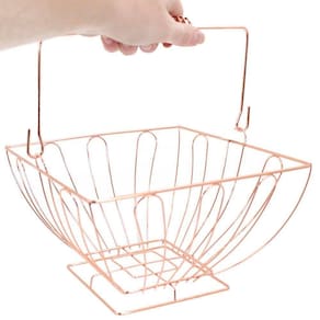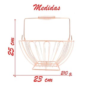 Cesto Multiuso Porta Frutas Aço Inox Rosé Quadrado Fruteira Com Alça 23cm