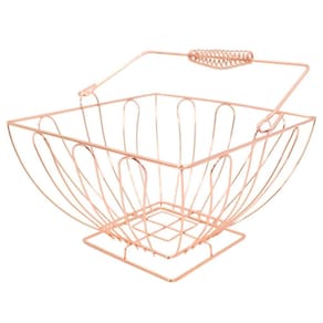 Cesto Multiuso Porta Frutas Aço Inox Rosé Quadrado Fruteira Com Alça 23cm -