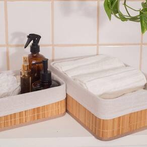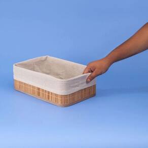 Conheça o cesto retangular de bambu com forro 29cm da OIKOS. É versátil e multiuso: Pode ser para organizar, acessórios, roupas, brinquedos, toalhas, itens de escritório, itens de higiene, itens de limpeza e mais! Vai bem na cozinha, na mesa, na sala - você que manda! Produto feito 50% à mão que pode ser item decorativo: O design do cesto une a estrutura do bambu e o forro de tecido branco, deixa a casa ainda mais moderna e charmosa. Lavável: Bem fácil de limpar! é Só remover o forro e lavar com sabão à mão ou na máquina. Feito de bambu: Material leve e ecologicamente correto, além de ser durável e higiênico: O bambu é resistente e tem propriedades que evitam a proliferação de bactérias, só precisa lavar e secar de acordo com as recomendações, combinado? Medidas: comprimento: 29cm largura: 19cm altura: 10cm