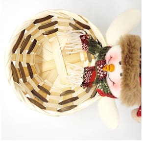 -01 unidade cesto palha natalino com boneco de neve pelúcia 15cm
