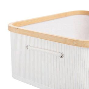 O Cesto Organizador Alma Burton é uma peça multiuso dessas que todo mundo precisa ter em casa. Pode ser utilizado no banheiro para organizar produtos de beleza, toalhas de rosto, ou na sala para melhorar a organização e decoração. É revestido com tecido em algodão, qual pode ser removido para a lavagem. O cesto organizador alma Burton é confeccionado em 65% bambu, material sustentável e sua estrutura é 5% metálica garantindo durabilidade e rigidez ao produto.
