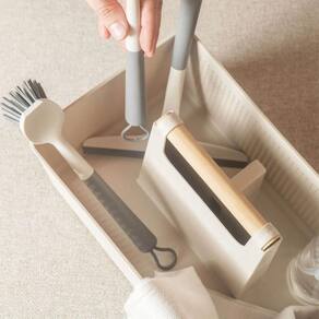 O cesto organizador multiuso 8L é a solução ideal para armazenar e organizar produtos de limpeza, toalhas, itens de higiene, e muito mais. Possui divisória interna para melhor acomodar seus objetos. Produzido em material resistente e durável, possui alça ergonômica em bambu, deixando o manuseio mais seguro e confortável, fabricado em cor neutra, com acabamento fosco que combina com vários estilos de decoração.