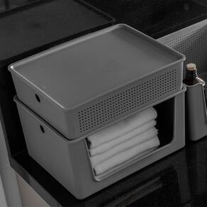 Os Cestos Flow mantêm cada espaço da casa organizado, proporcionando uma rotina fluida e eficiente. São a solução ideal para armazenar e organizar produtos de limpeza, roupas, acessórios ou alimentos. Com oito tamanhos disponíveis, você pode compor como quiser.