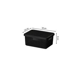 Cesto Organizador com Tampa Preto 18x13x8 cm Linea Descrição:O Cesto Organizador com Tampa da linha Linea da Paramount é a solução perfeita para manter sua casa organizada com elegância e praticidade. Versátil e funcional, este cesto conta com alça integrada para facilitar o transporte e tampa resistente que possibilita empilhamento seguro. Ideal para qualquer ambiente, ajuda a otimizar espaços e manter seus objetos protegidos e organizados. Descrição Técnica (sem caracteres especiais):Produto Cesto Organizador com TampaMarca Linea ParamountCor PretoMaterial Plastico resistenteDimensoes 18 x 13 x 8 cm Comprimento x Largura x AlturaPeso 138 gramasAlca Integrada SimTampa Resistente para empilhamentoUso indicado Organizacao de objetos diversos em casa ou escritorioDesign Versatil e funcional