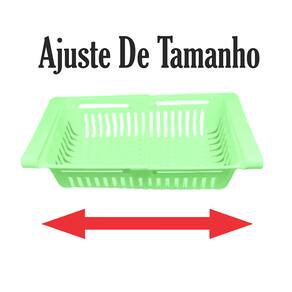 Organização Personalizada: Diga adeus à bagunça em sua geladeira! Apresentamos nosso Cesto Organizador Ajustável, uma solução inteligente para otimizar o espaço de armazenamento. Com medidas flexíveis, este cesto pode ser expandido lateralmente de 20cm para 28cm, oferecendo um ajuste perfeito às suas necessidades.