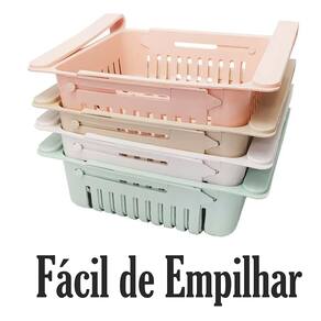 Fácil de Encaixar: Com encaixe fácil e seguro, este organizador é projetado para se integrar perfeitamente ao seu espaço. Mantenha seus alimentos organizados, acessíveis e em perfeita ordem.