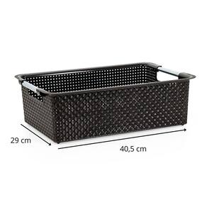 Cesto Organizador em Rattan Marrom 04 Descrição: Este Cesto Organizador em Rattan Marrom é a solução perfeita para quem busca praticidade sem abrir mão do design. Com capacidade de 6 litros e formato retangular, oferece amplo espaço para organizar diversos itens, mantendo seus ambientes sempre arrumados e elegantes. Características: Dimensões generosas: 40cm comprimento x 29cm largura x 13,5cm altura Capacidade ampla: 13,5 litros - ideal para armazenar diversos objetos Material premium: Rattan sintético de alta resistência com acabamento em preto Design versátil: Combina com qualquer estilo de decoração Fácil manutenção: Limpeza simples com pano seco ou levemente úmido Composição: Cesto Organizador em Rattan Marrom Especificações: Marca: Niquelart; : 3 meses; ---- Aqui na Casa & Tendência você encontra os melhores utensílios domésticos e tudo que você precisa para sua cozinha ---- Marca: Não Informado Ean: 7896594866114