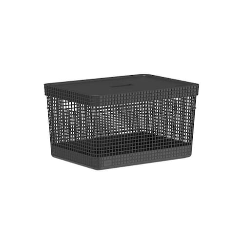 Cesto Organizador Grid Com Tampa 20 Litros Preto - OU