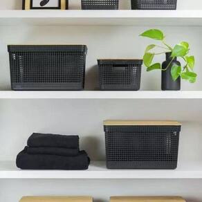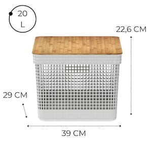 A linha de Cestos Grid foi desenvolvida com um mix perfeito entre conforto, design e funcionalidade. Os cestos possuem diversos tamanhos, são empilháveis e versáteis. São diversas opções com cores neutras e acabamento fosco, que combinam com qualquer ambiente.Podem ser utilizados em closets, cozinhas, lavanderias ou até mesmo na sala de estar para decorar. O Cesto Organizador Grid Com Tampa De Bambu possui medidas de 39cm-profundidade x 29cm-largura x 22,6cm-lltura e a capacidade de 20 litros. Além de possuir tampa em bambu que traz um toque a mais de sofisticação e elegância para qualquer ambiente da sua casa.Os Cestos Grid são perfeitos para aliar organização e decoração na sua casaCuidadosSugere-se higienizar com sabão neutro e esponja macia, evitando produtos abrasivos no processo de limpeza.