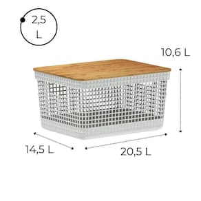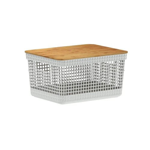 A linha de Cestos Grid foi desenvolvida com um mix perfeito entre conforto, design e funcionalidade. Os cestos possuem diversos tamanhos, são empilháveis e versáteis. São diversas opções com cores neutras e acabamento fosco, que combinam com qualquer ambiente.Podem ser utilizados em closets, cozinhas, lavanderias ou até mesmo na sala de estar para decorar. O Cesto Organizador Grid Com Tampa De Bambu possui medidas de : 10.6cm altura- Largura 14.5cm-profundidade 20.5cm e a capacidade de 2,5 litros. Além de possuir tampa em bambu que traz um toque a mais de sofisticação e elegância para qualquer ambiente da sua casa. Os Cestos Grid são perfeitos para aliar organização e decoração na sua casaCuidadosSugere-se higienizar com sabão neutro e esponja macia, evitando produtos abrasivos no processo de limpeza.
