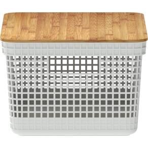 O Cesto Organizador Grid Com Tamp De Bambu possui medidas de 29cm-profundidade x 23cm-largura x 15,6cm-altura