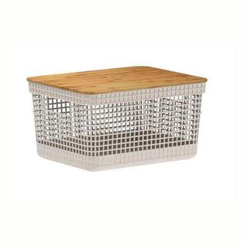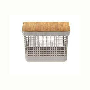 Cesto Organizador Grid Com Tampa Em Bambu 8L Ou Bege -